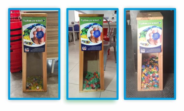 Como primer destino de esta iniciativa, definimos la temática “Tapitas por Salud”, con el propósito de reunir tapitas que serían entregadas al Rotary Club, organización que las destina a la fabricación de marcos de anteojos para niños.